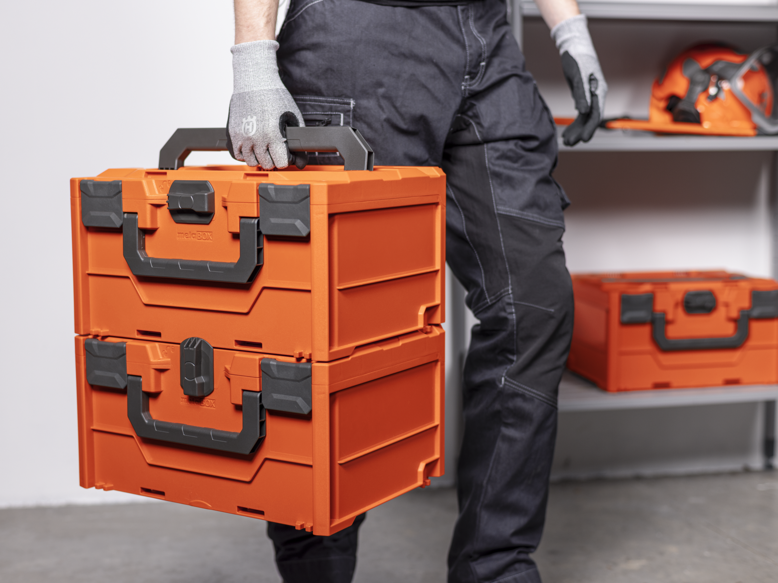 - Ergonoomiline eesmine käepide – Eesmine käepide võimaldab kasti ergonoomiliselt kanda ja annab hõlpsa juurdepääsuks kastile, kui see asetatakse riiulile või sõidukile.