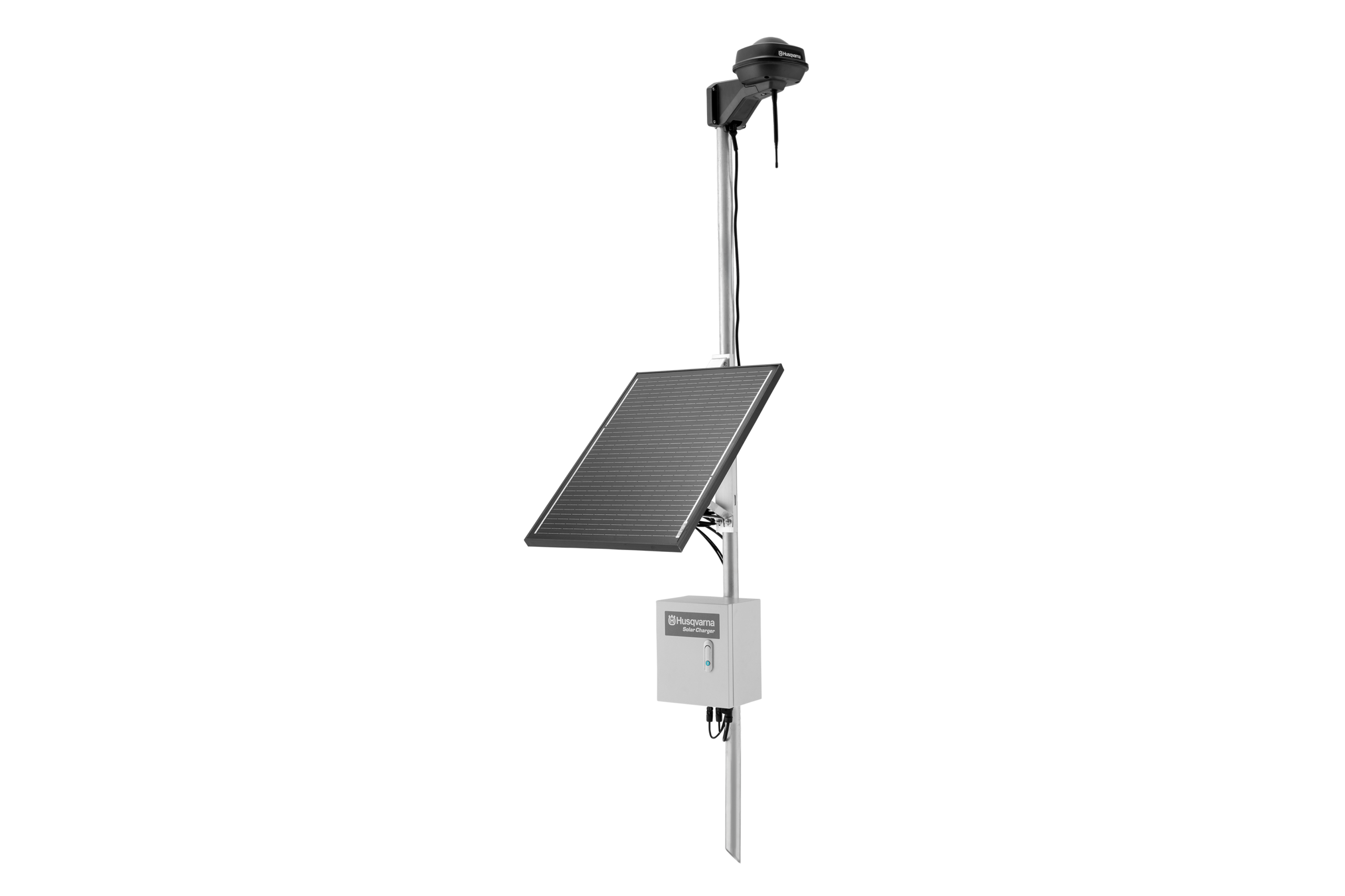 See Husqvarna päikesejaam on eraldiseisev lahendus, mis on loodud varustama Husqvarna tugijaama piisava vooluga, et tagada selle ööpäevaringne töö. See sisaldab 60W päikesepaneeli, 20Ah akut, juhtseadet ja kronsteine lihtsaks posti külge paigaldamiseks.