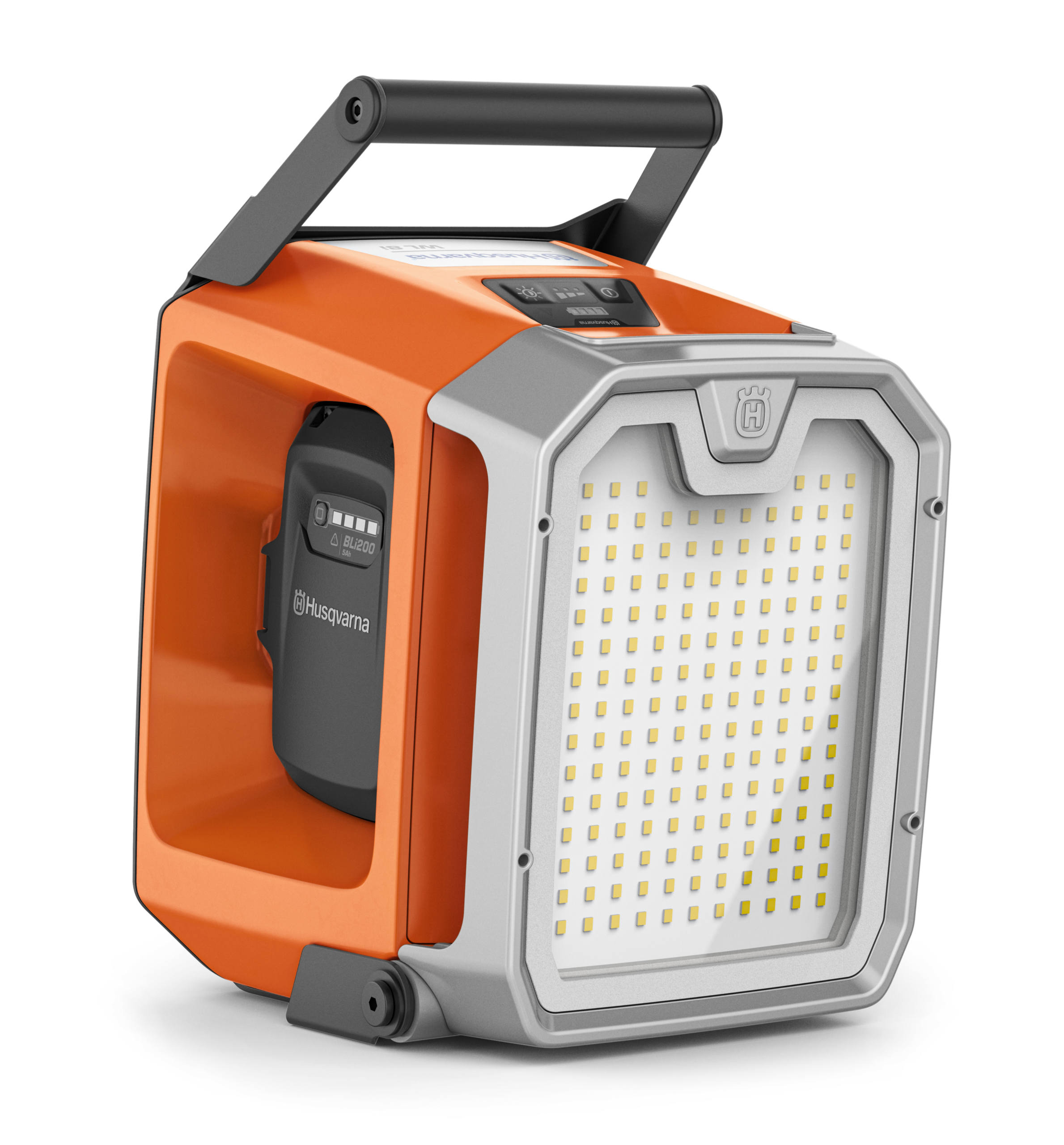 - Võimas töökoha valgustus – 160 LED lights with a combined light of up to 8000 lm and up to 48 hours operating time. 3 light settings, and memory function ensuring it always returns to the latest setting when switched on.